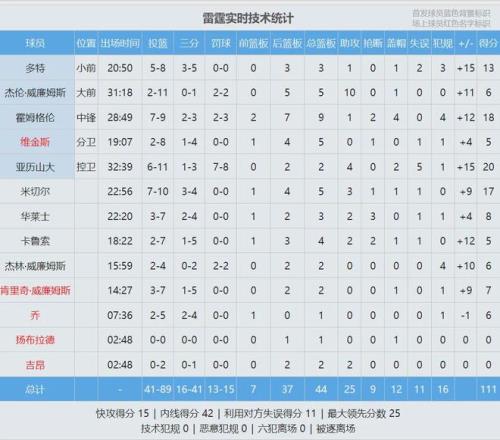 阿门12分5板2助,得分全队最高。除了他跟杜兰特,其余火箭球员得分都是个位数。下半场开始,小贾巴里连中两记三分,火箭完成反超。多尔特和阿隆-维金斯三分回应,亚历山大和杰威造杀伤,雷霆还了一波12-3再次领先。