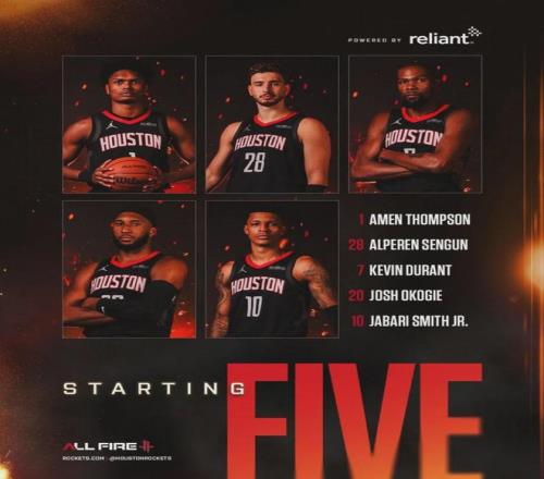 火箭这边,伊森、范乔丹和芬尼-史密斯因伤休战,雷霆中锋哈滕继续缺阵。火箭本场首发:阿门-汤普森、奥科吉、杜兰特、小贾巴里-史密斯、申京。雷霆首发:亚历山大、阿隆-维金斯、多尔特、杰伦-威廉姆斯、切特-霍姆格伦。